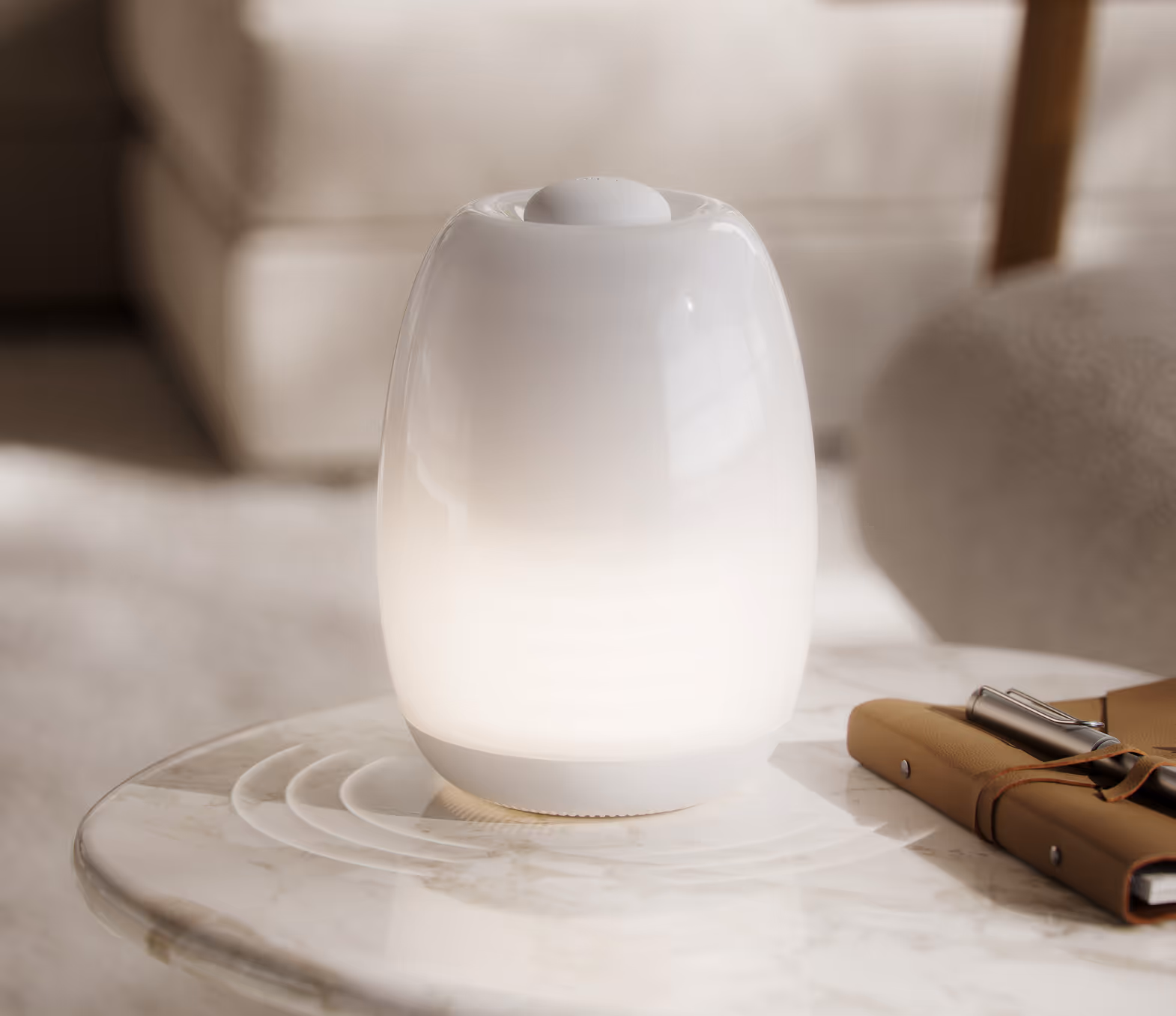 Ohm was designed to fit naturally into busy lives and cozy homes. Simply lift the stone to start a session - no screens required.