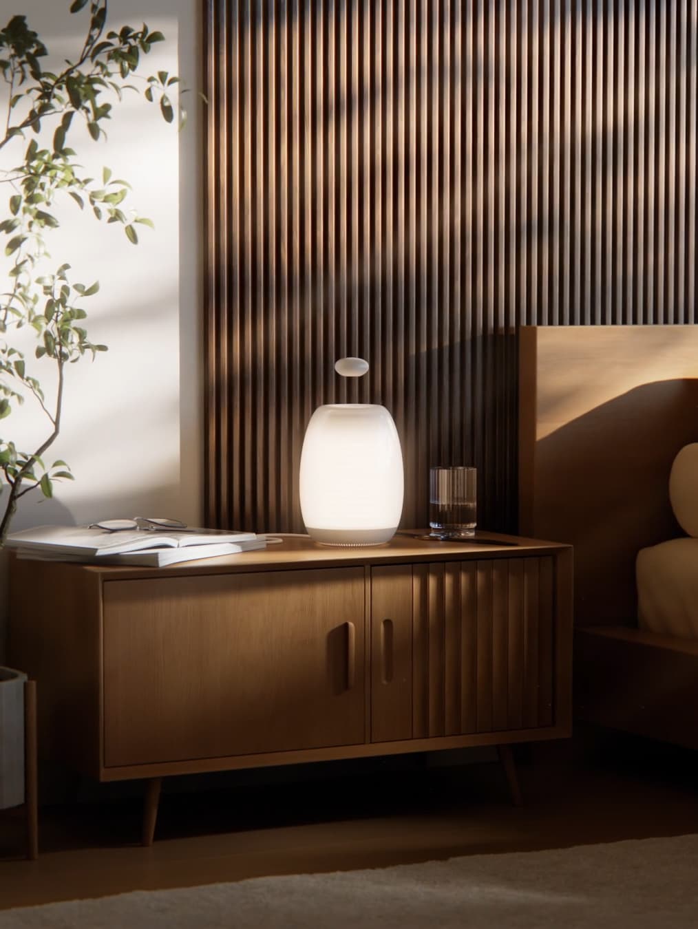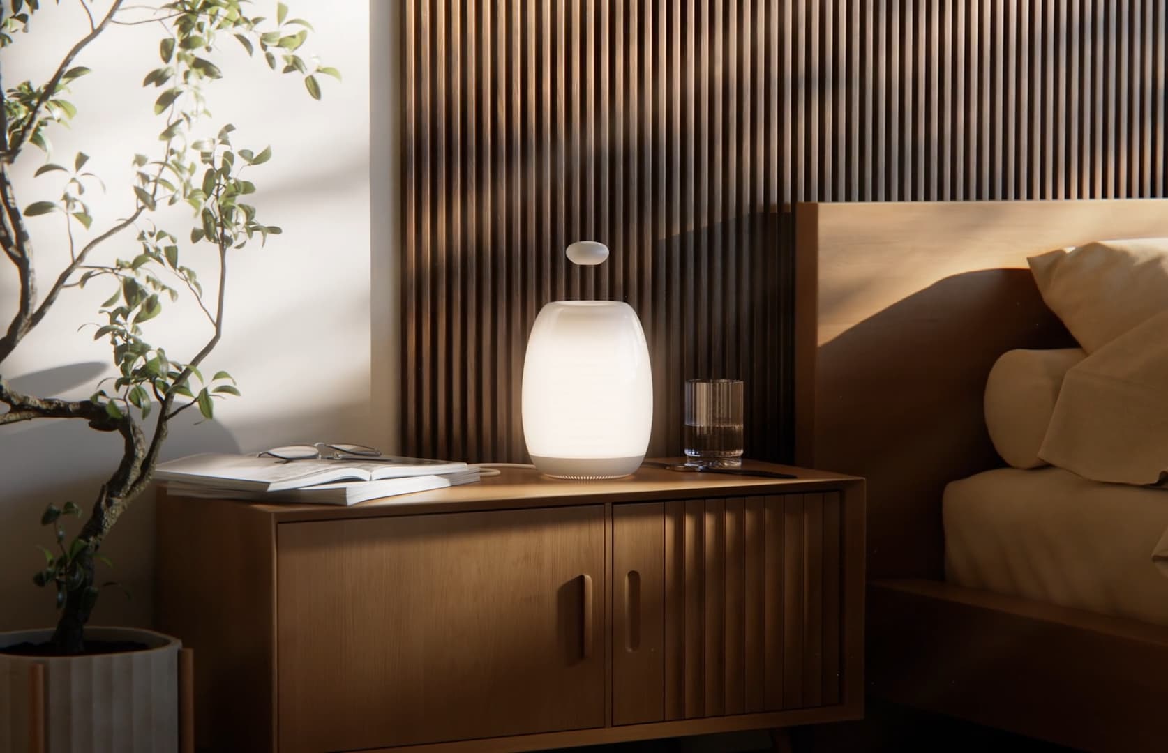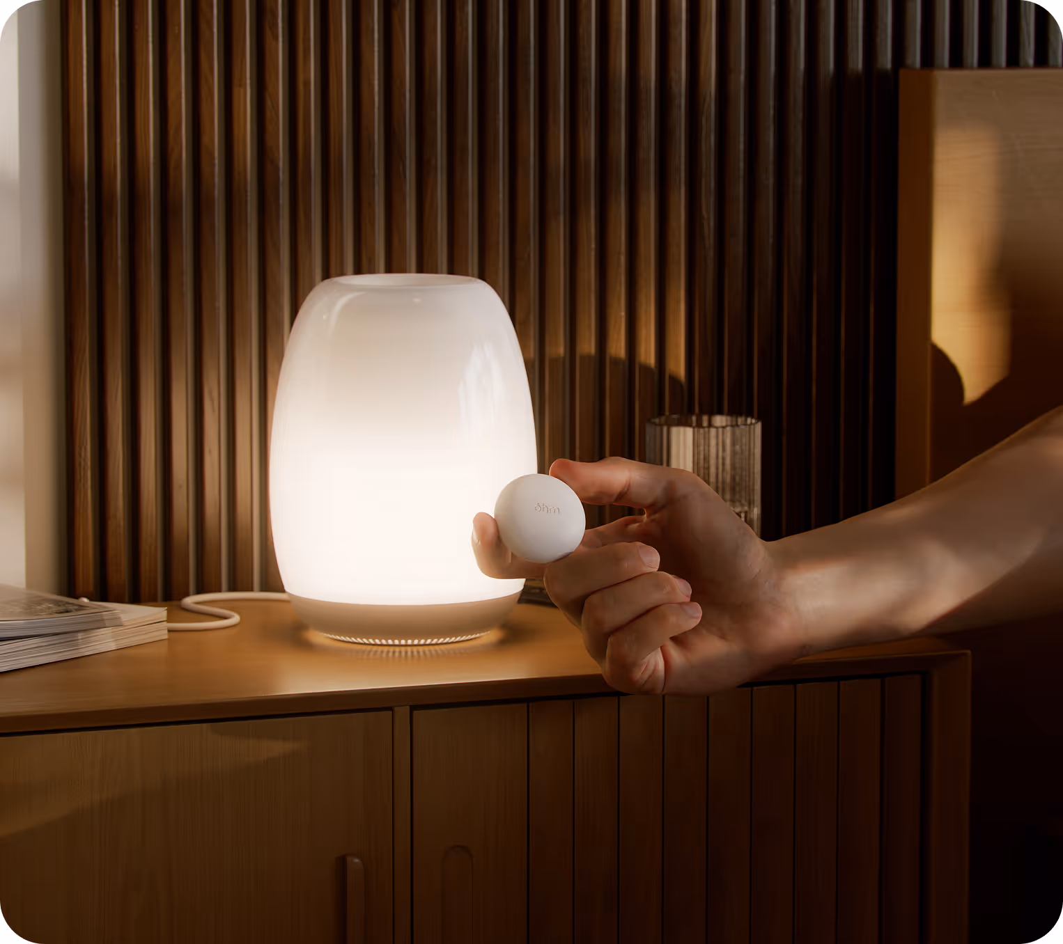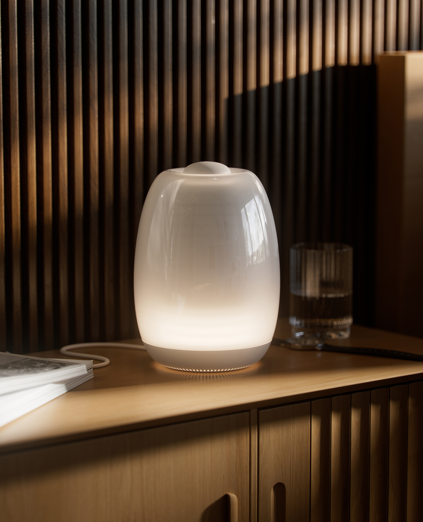 The Ohm Resonance Lamp uses light, sound, and touch to balance your nervous system through guided slow breathing.
