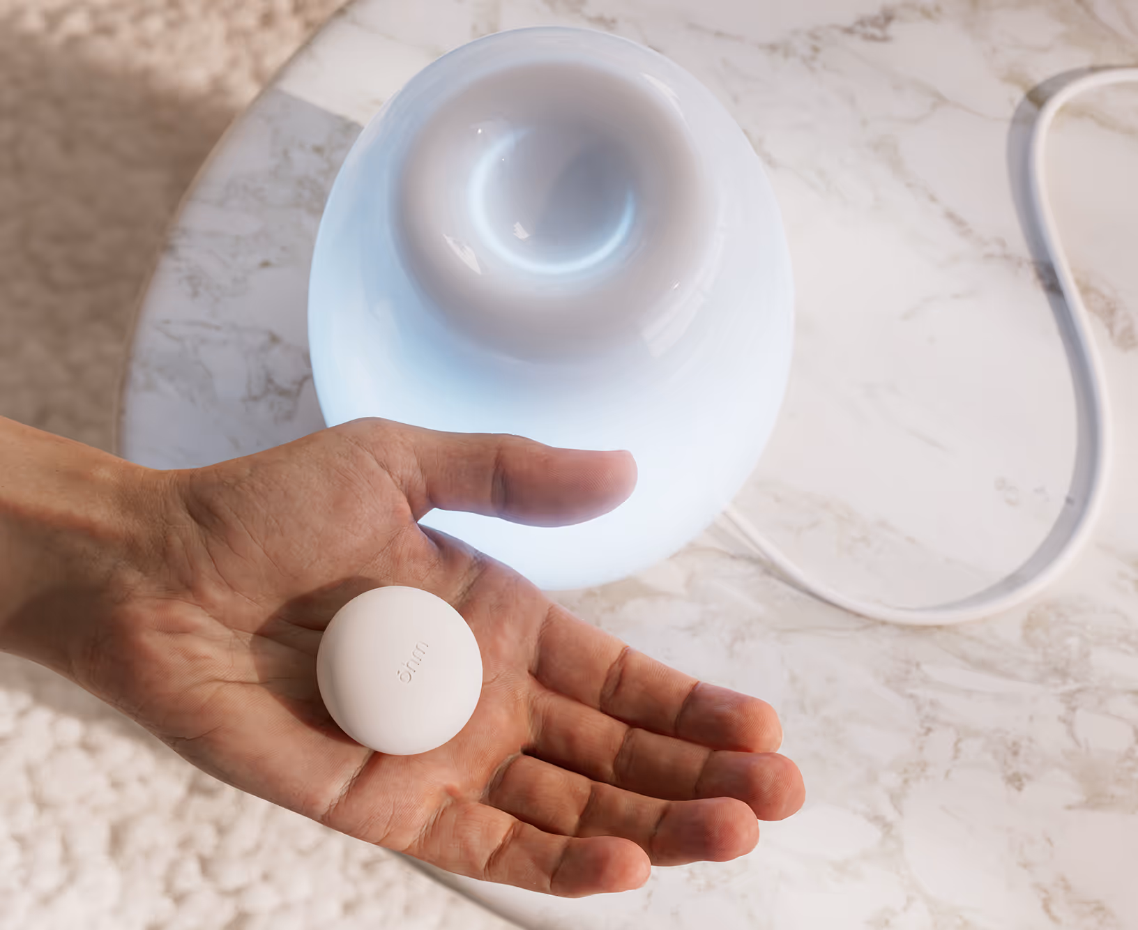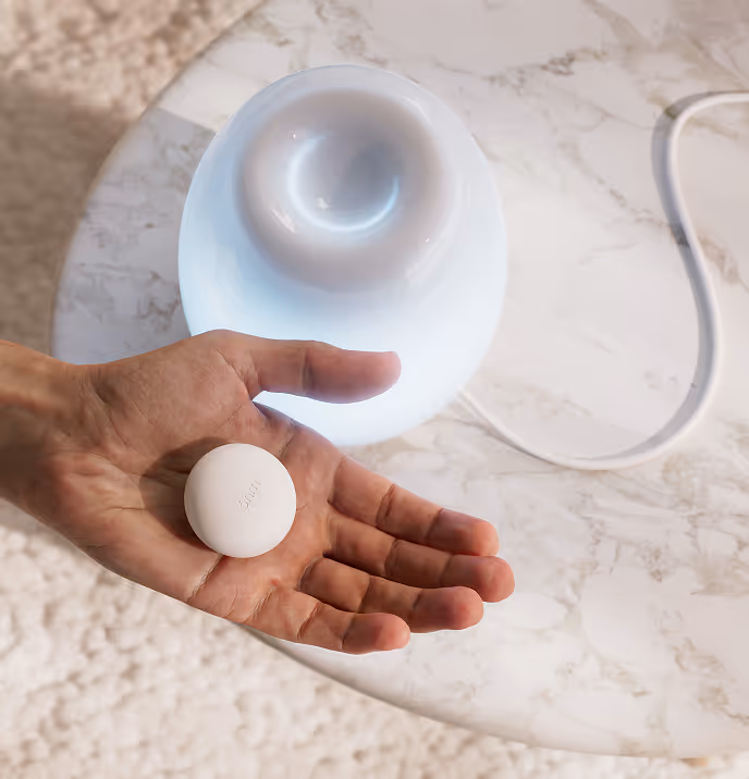 Ohm is a lamp, not a wearable or app. It lives where you live, guiding your body into balance without screens or distractions.